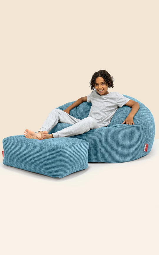 • Családi Méretű Hatalmas Babzsák Gyermekek Számára 3-14 Éves - Klasszikus Kordbársony Égei-tengeri kék 01
