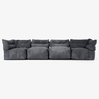 Ez a négy részből álló moduláris kanapé teljes szabadságot ad az ülőhelyek elrendezéséhez a lakás és életstílus szerint. Állítsa be klasszikus L-alakú kanapénak egy kényelmes családi sarokhoz, tökéletes pihenéshez, olvasáshoz vagy filmnézéshez. Vagy válassza szét a modulokat egyéni ülésekké, hogy extra helyet biztosítson vendégeknek. Minden elem könnyen mozgatható, puha, támasztó ülést kínál a babzsákfotel laza érzésével, miközben a szerkezet a mindennapi családi élethez igazodik.