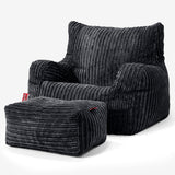 Lounge Pug Klasszikus Kordbársony Babzsák-székek Felnőtt babzsák-karosszék Fekete– Big Bertha Original HU