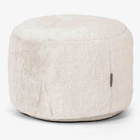 Lounge Pug Kisméretű Kerek Zsámoly Sztintetikus Nyúlszőr Fakó Fehér– Big Bertha Original HU