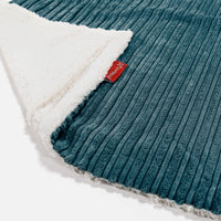 Lounge Pug Nagy Sherpa Dísztakaró / Pléd Kanapéhoz 140 x 200cm Klasszikus Kordbársony Pávakék– Big Bertha Original HU