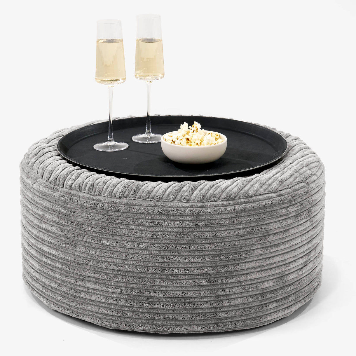 Lounge Pug Tálcás Ottoman Puff Klasszikus Kordbársony Grafitszürke– Big Bertha Original HU