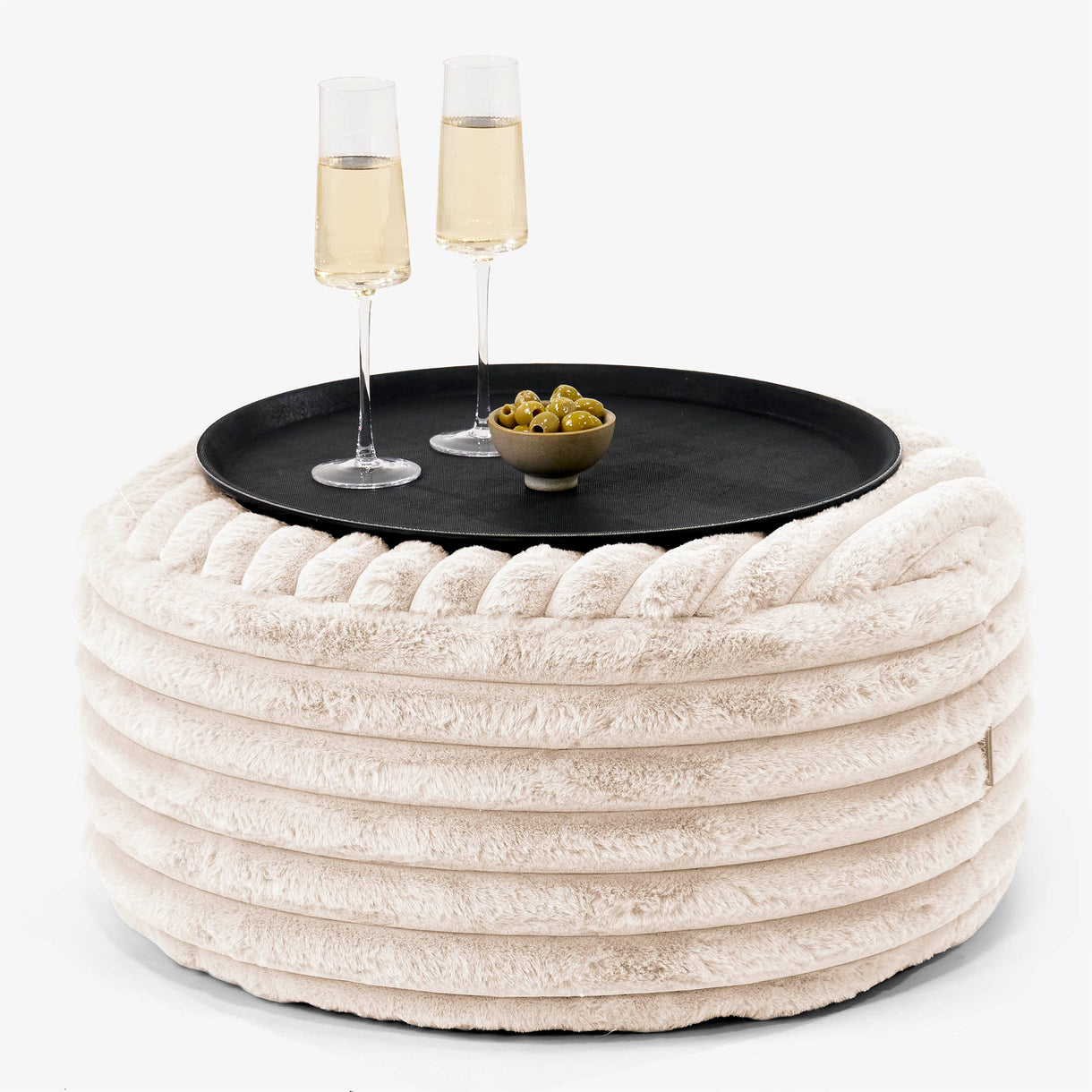 Lounge Pug Tálcás Ottoman Puff Ultra Plüss Kord Tejszín– Big Bertha Original HU